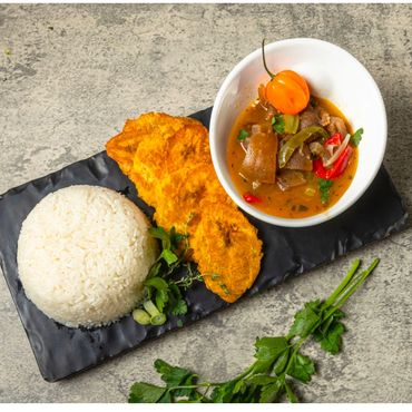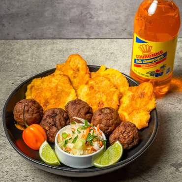 Our Fritay are served with plantains, marinade, accra, and a salad.